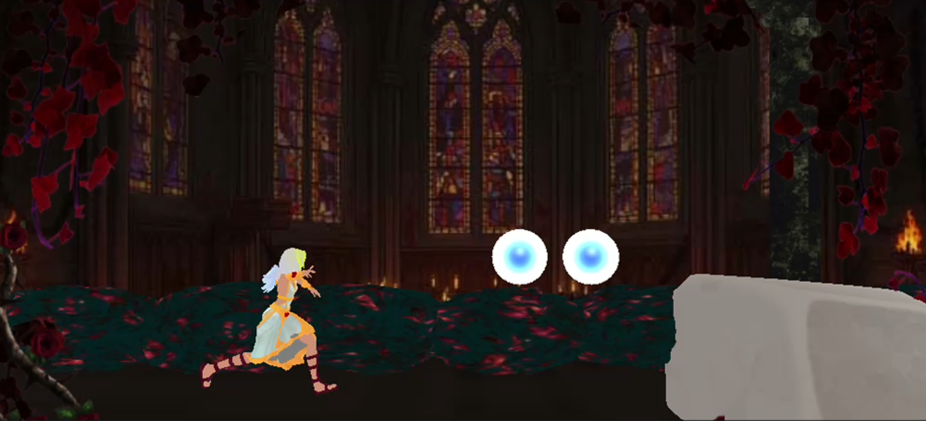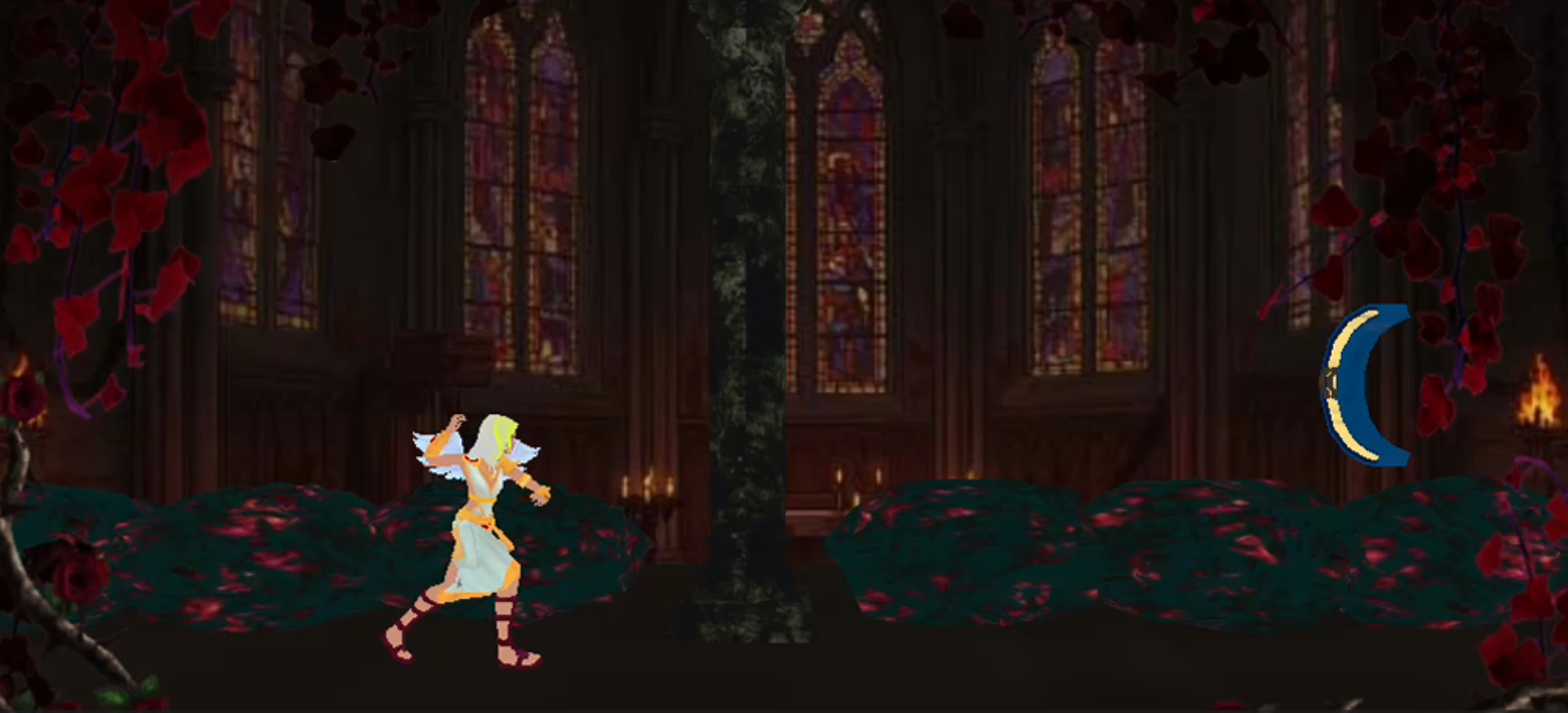 "Solnar Child", A young angel, a celestial being of pure light, has been captured and imprisoned within the crumbling walls of a desecrated, blood-red cathedral. Once a place of worship, the church is now a sprawling, desolate labyrinth that defies the laws of space—an endless corridor of ruin where the exit never appears.